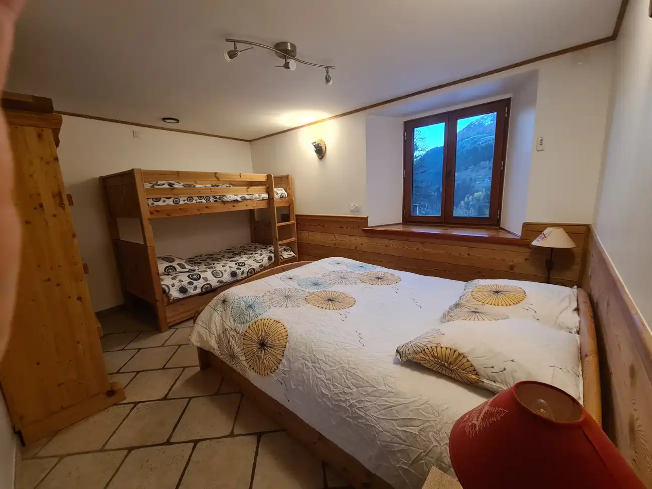 - une chambre avec un lit double en 140*190 ainsi qu'un lit superposé en 90*200, soit 4 couchages